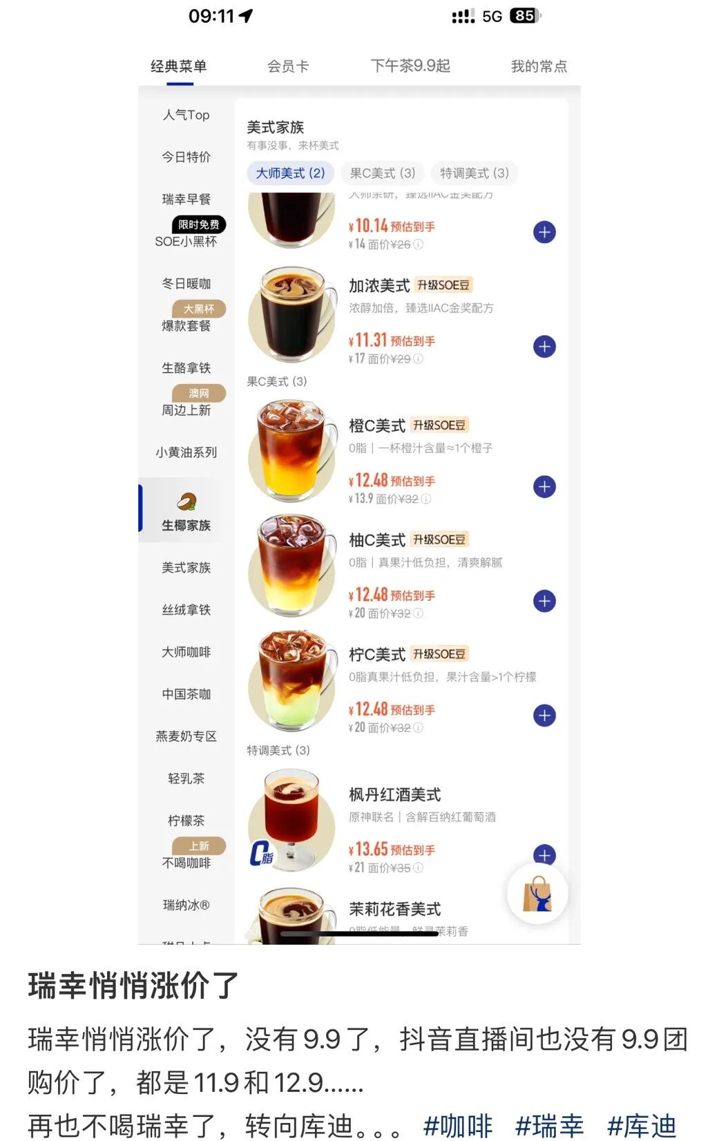 曾经以“9.9元咖啡”收割打工人味蕾与钱包的瑞幸,此次偷偷涨价,让消费者深感被“背刺”!