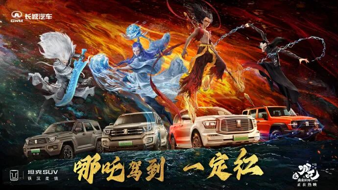 值得一提的是,被津津乐道的哪吒汽车与《哪吒》联动彻底成为过去,因陷入发展困局未能再度携手,由长城旗下的坦克接上,红色涂装 SUV主打“一定红”,传递美好的祝福寓意。