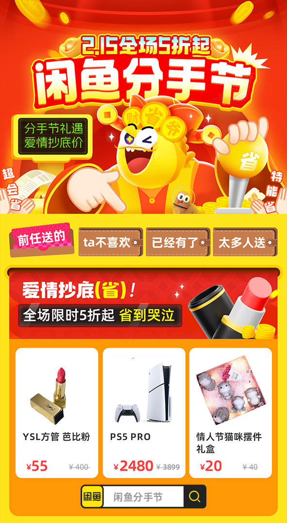 情人节过后,有人忙着晒转账记录,有人默默挂出前任的礼物。在闲鱼,一个名为“分手节”的活动正以“情感清仓”之名,将浪漫的余温转化为一场集体行为艺术:卖掉旧爱,回血新生活。
