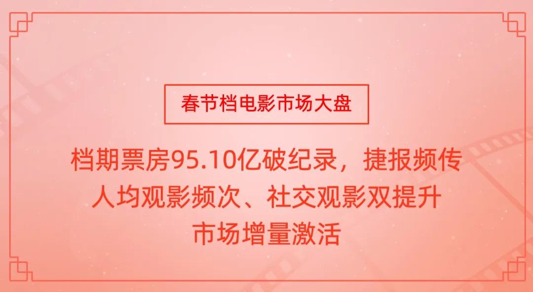 1. 市场大盘表现亮眼:档期票房达95.10亿,观影人次1.87亿,均创历史新高,日均票房11.9亿,场次348.6万,上座率43.3%。大年初一票房18.08亿打破影史纪录,初一至初七单日票房均破12亿。预售方面,大年初一预售票房10.6亿,映前4天增速加快。三四线城市票房占比超50%,成为票房重要支撑。女性购票用户占比达63.5%,35岁以上用户占比44%,熟龄观影属性增强。人均观影次数提升至1.4次,单均购票张数升至2.08张,多人观影占比增长至24%,异地购票占比为31.4% 。