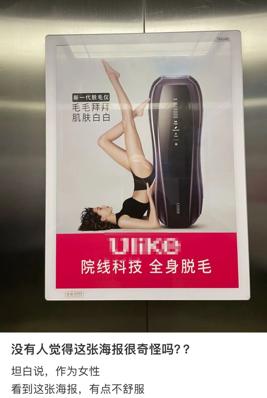 在封闭且难以回避的公共空间,电梯广告的视觉冲击力会被放大,容易加深女性消费者产生「被审视」的不适感。
