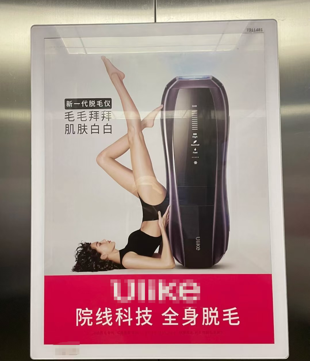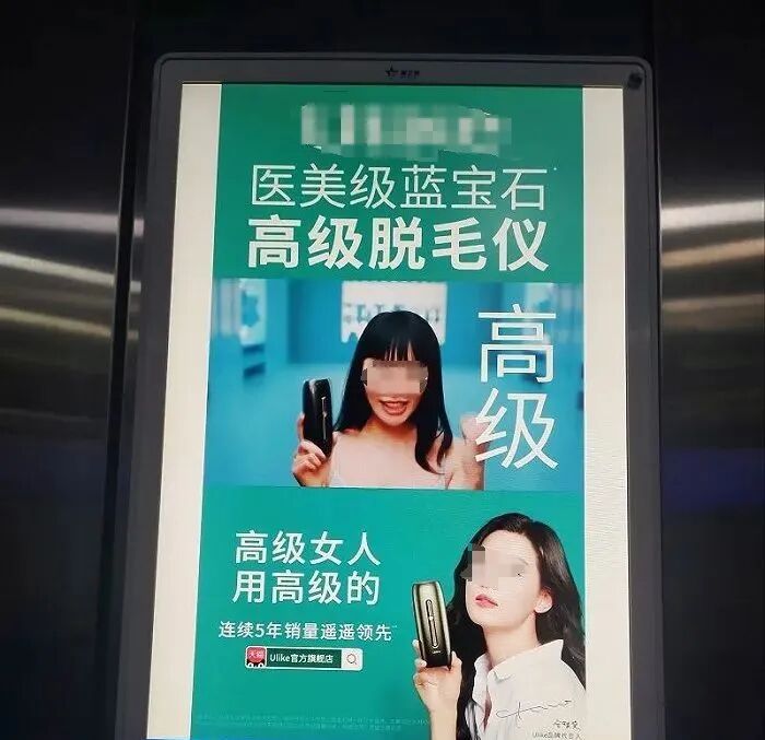 为了宣传“地表最强脱毛神器”,各大城市也同步上线了电梯广告。