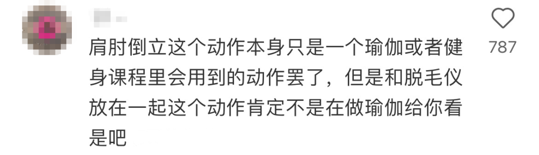 不过,也有网友认为,采用瑜伽姿势,主要是可以同时聚焦于腋下和腿部这两个重要脱毛部位,展示脱毛的干净效果。