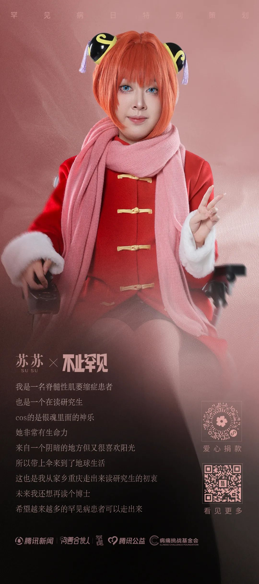 罕见病病友及家属们用cosplay的方式,让角色替灵魂发言,让更多人不止看到他们的疾病,不止看到一种生存状态,不止看到感动或励志,他们还有更多超出想象的可能。