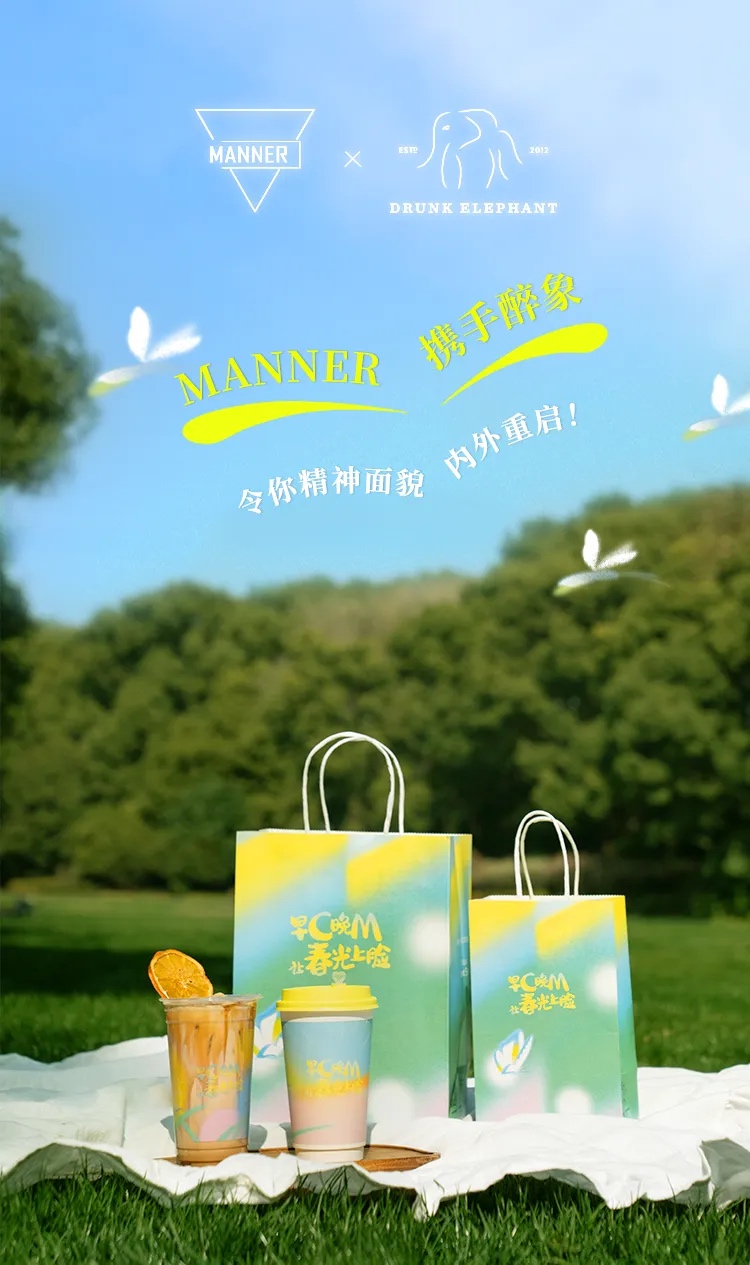 MANNER携手醉象,「晨」意焕新,惊喜联名。联名饮品「清晨拿铁」全国门店焕装上市。清橙风味拿铁装点春日缤纷 ,从清晨开始元气满满。
