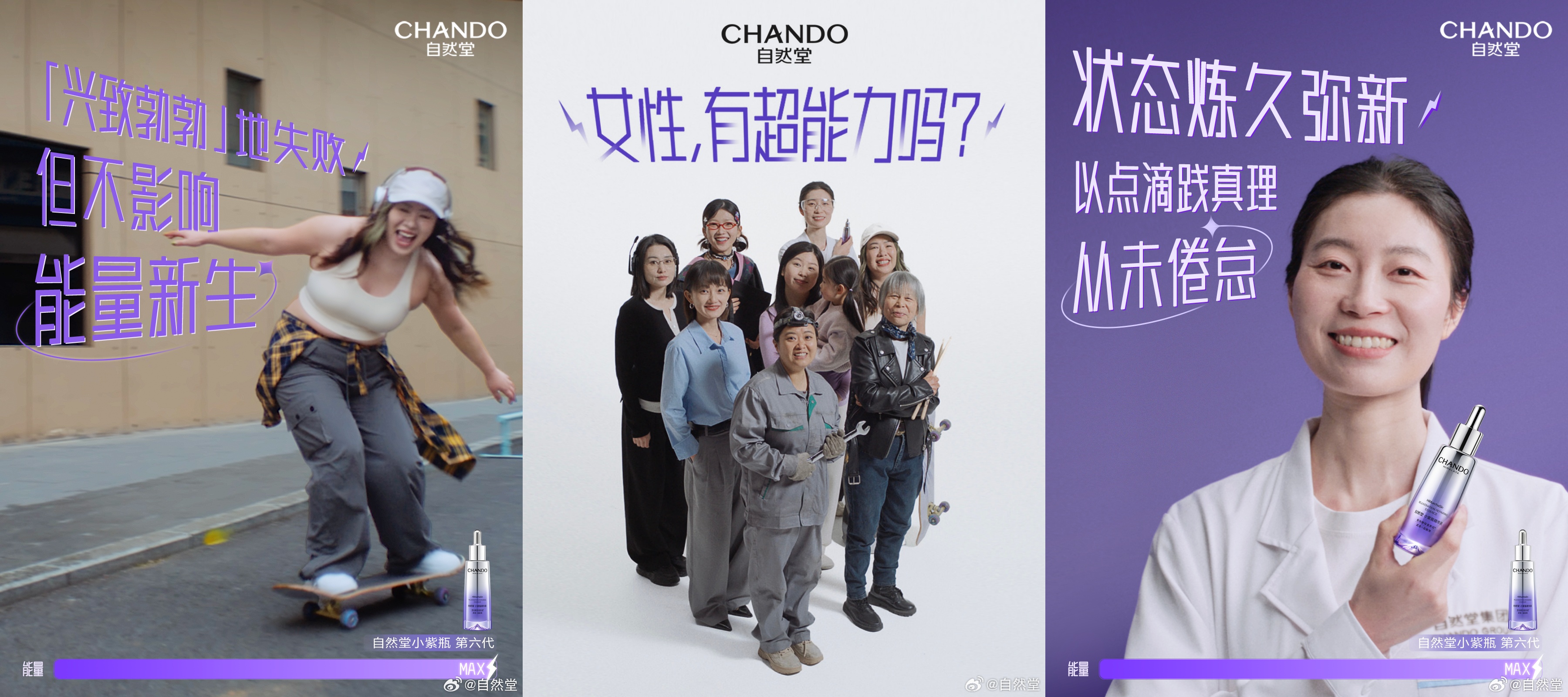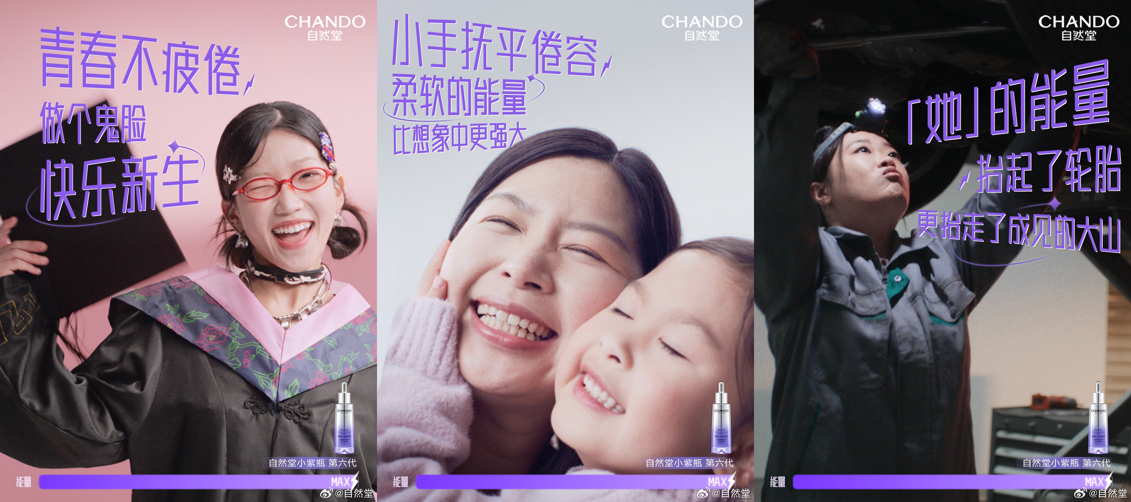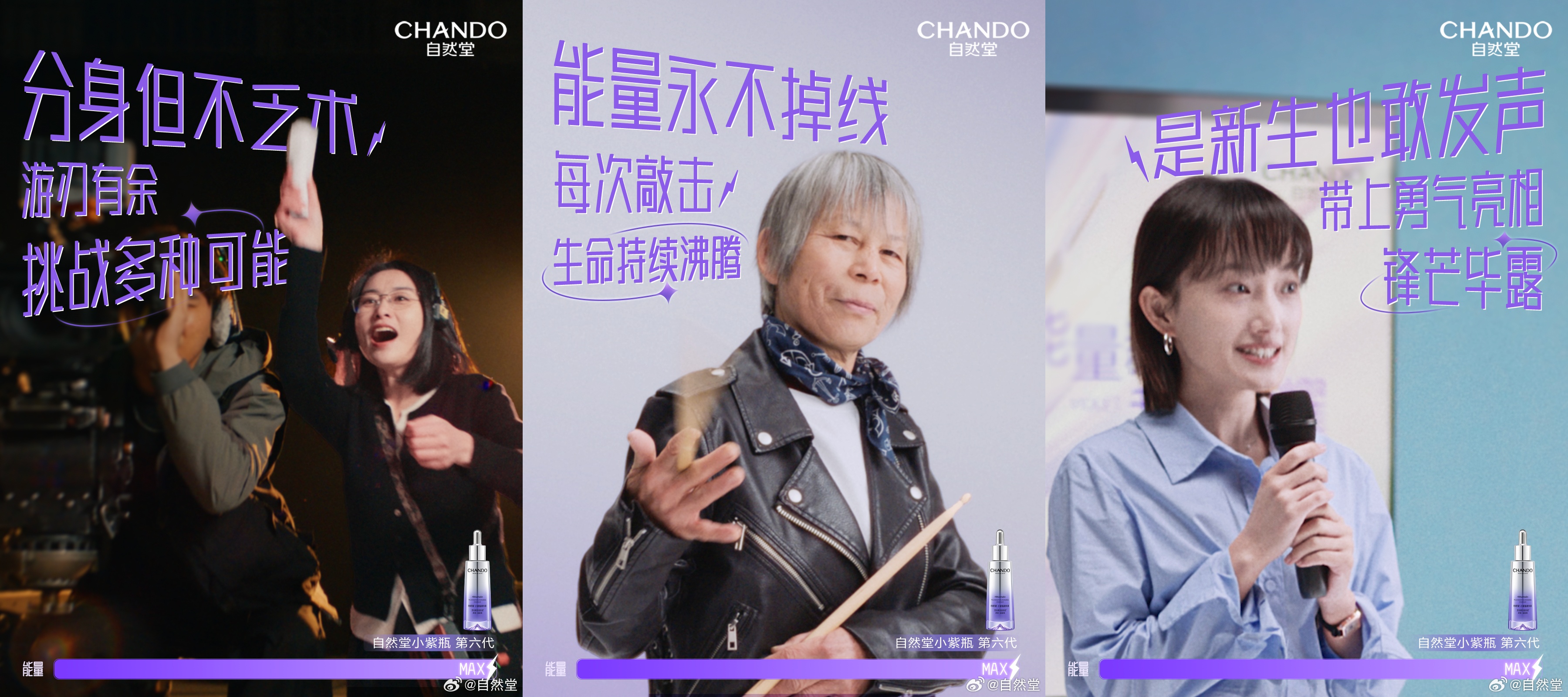 女性能量的闪耀,从不止于台前的光,镜头内外,能量持续新生,自然堂小紫瓶发现女性本就拥有的能量,做你闪耀人生的坚定盟友。