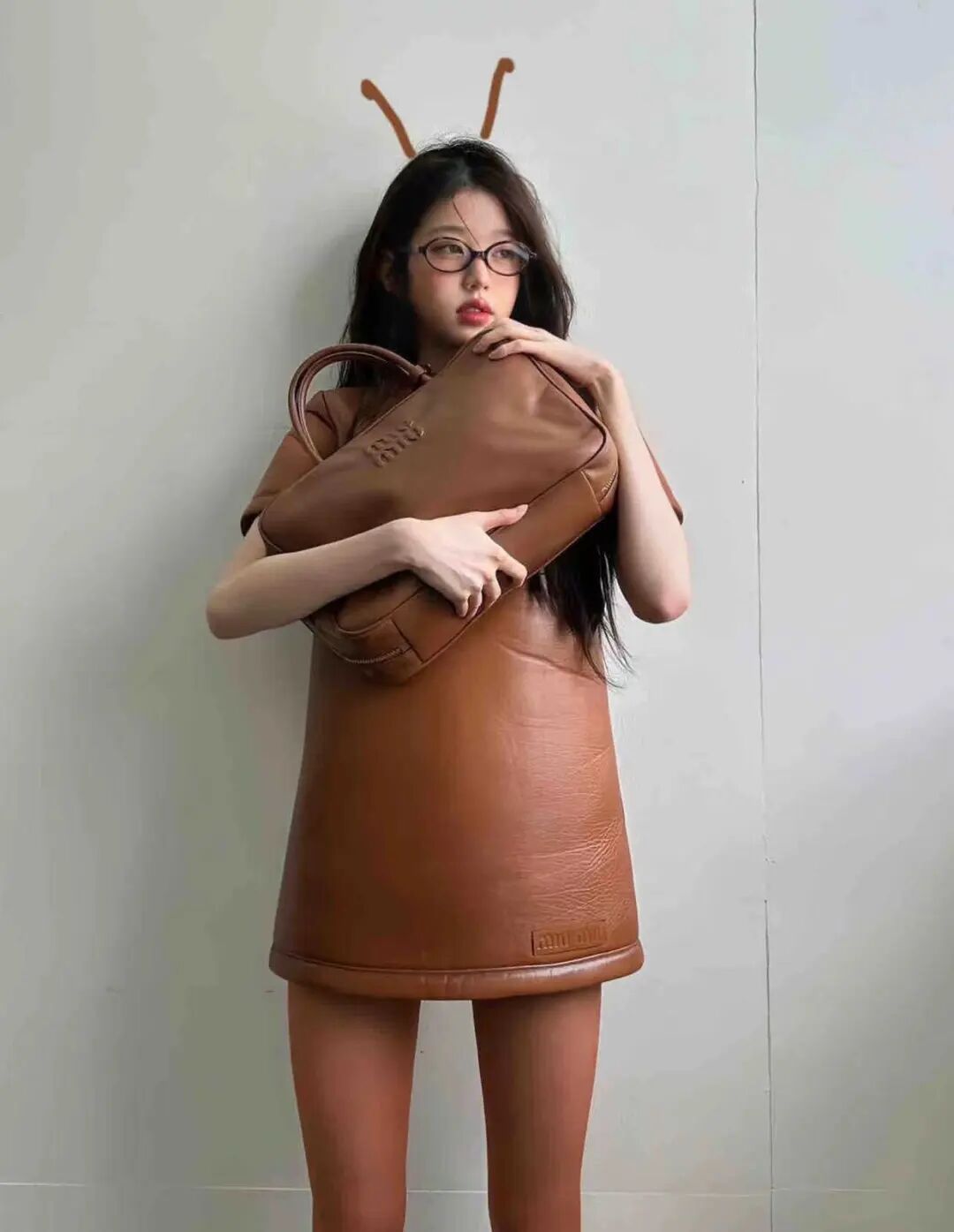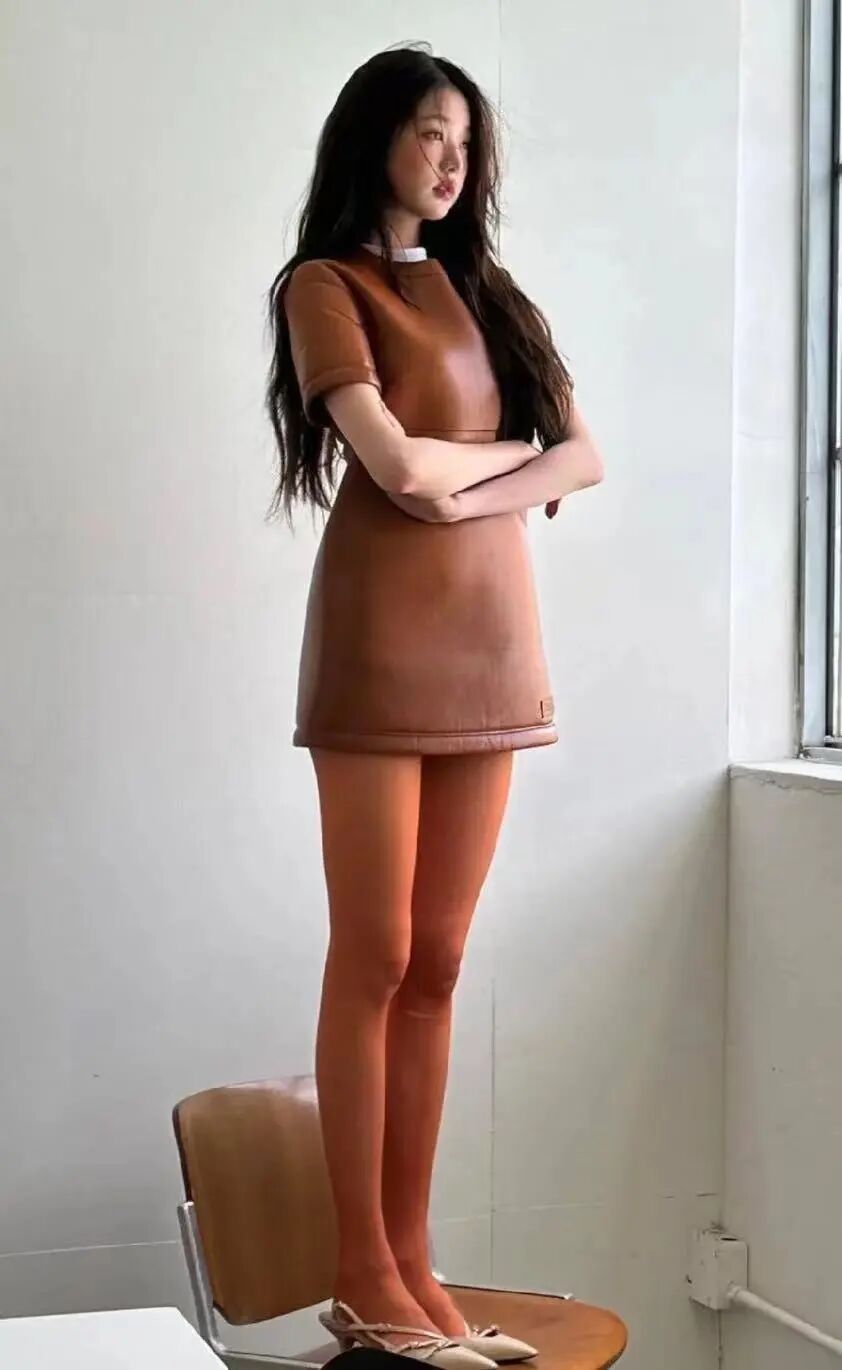 搭配同色系鼓鼓囊囊的臃肿皮裙