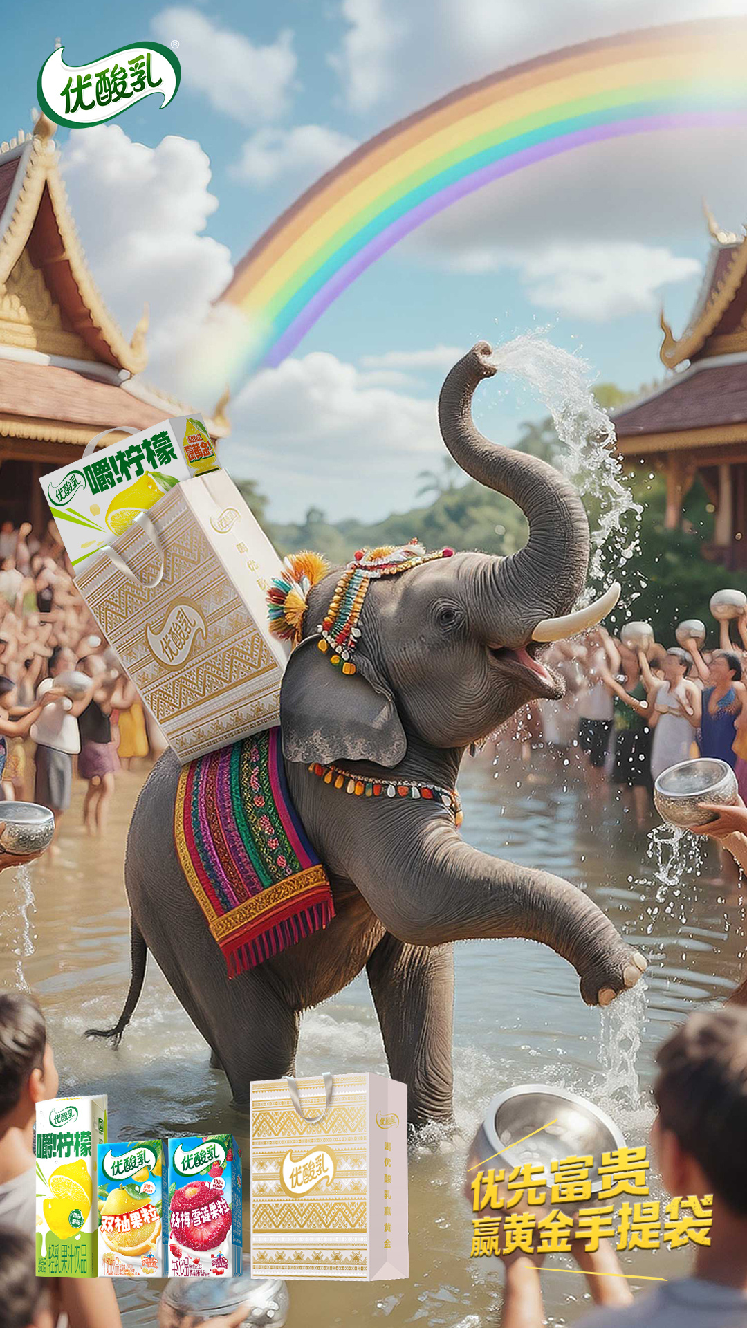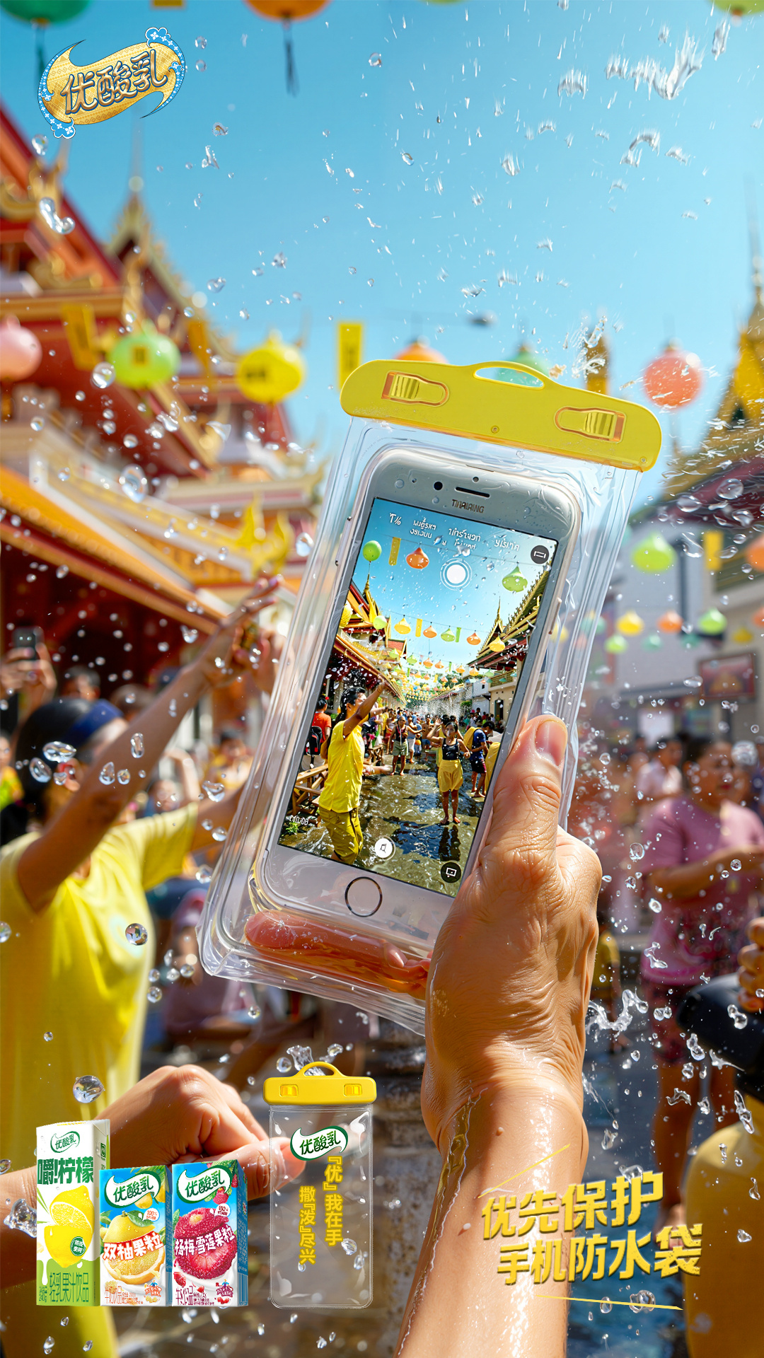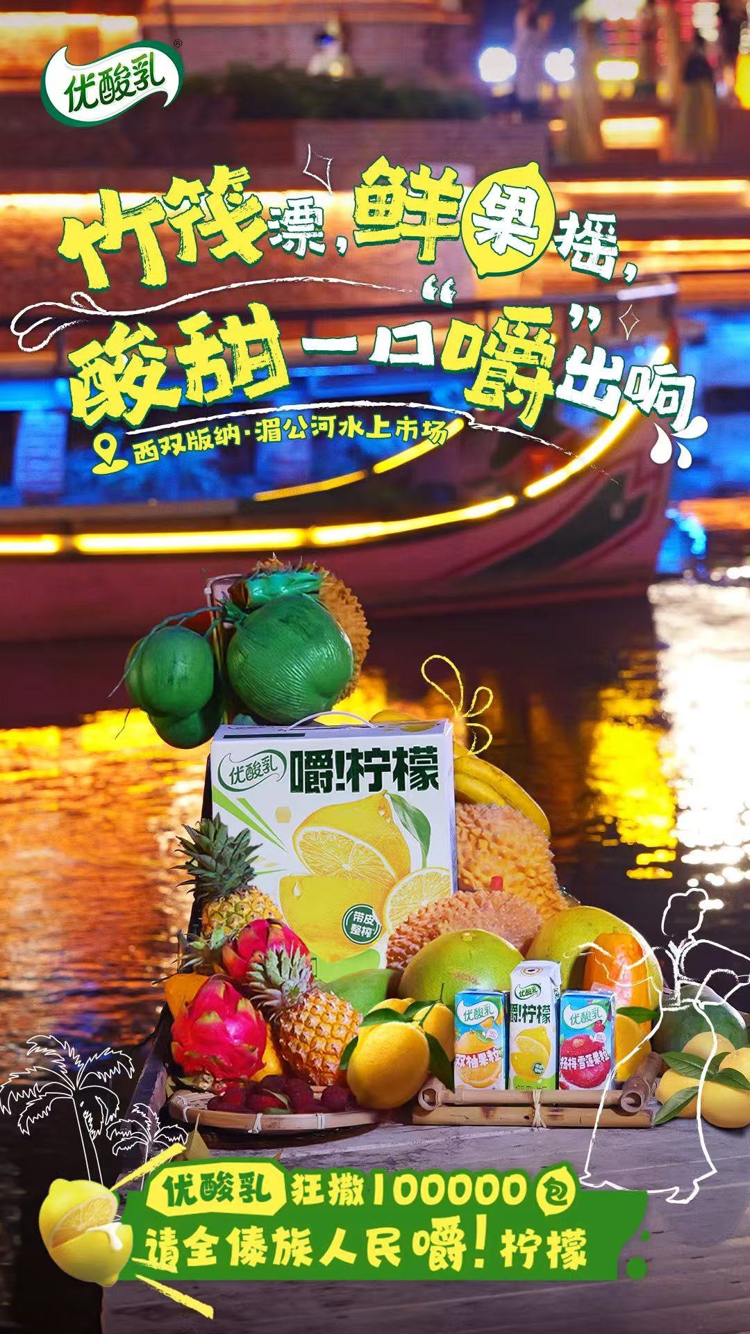 在优酸乳用「优酸乳嚼柠檬」承包南昌大学的饮料后,品牌带着这款新品空降西双版纳,亮相于一年一度的傣族泼水节期间,并发布了一则有趣的广告片。