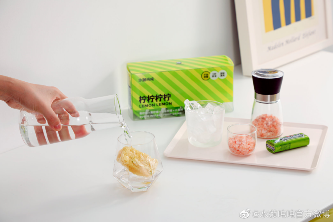 对冻干技术的应用使得水獭吨吨推出了现象级单品超即溶冻干果茶,如今已经吸引了一大批忠实拥趸。同样靠着咖啡赛道萃取技术的模仿,再加上最近一两年柠檬味饮品的爆发,水獭吨吨乘胜追击推出了柠檬鲜萃液等产品。