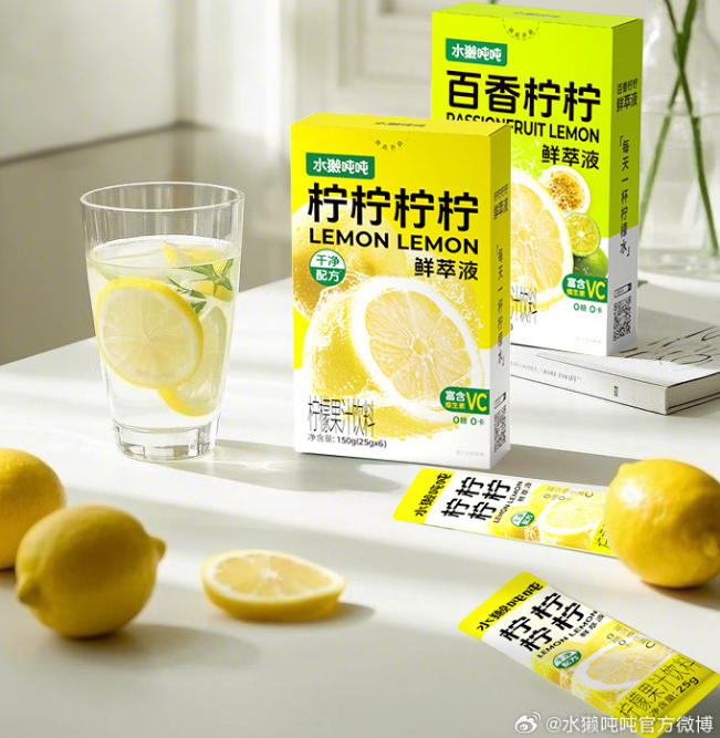 柠檬本身自带的健康和补充维生素C的属性,完美契合这一趋势。例如水獭吨吨所推出的柠檬鲜萃液通过“氮气锁鲜”等工艺,有效取代防腐剂的同时还能够保留柠檬的原本风味和消费者对健康的追捧,这也是为什么水獭吨吨的新品一经推出就能够迅速登顶各大榜单的关键原因。
