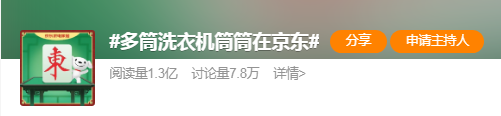 在这场营销活动中,京东打出了 “筒筒在京东,洗衣机也出全家桶” 的宣传口号,话题阅读累计超过了4.3亿。