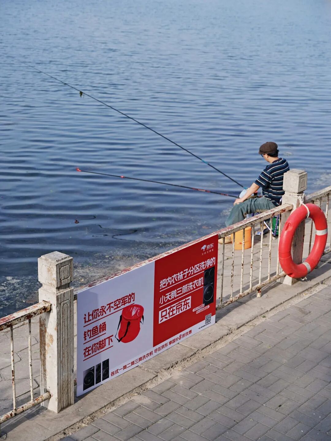 还有借钓鱼佬忠爱的鱼桶宣传小天鹅三筒洗衣机: