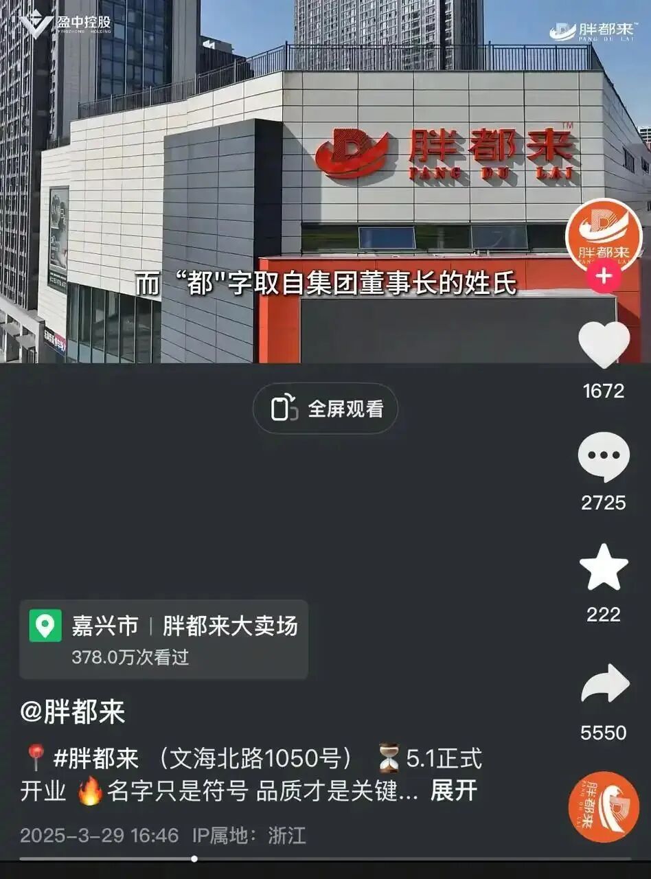 事实上,这家卖场的社交账号在4月前后开始就开业进行宣传,之前在视频中还专门解释了命名问题,名字只是符号,品质才是关键。“胖”寓意着丰盈、富足、美好,这一理念贯穿于他们的经营中,确保商品琳琅满目,价格实惠,服务贴心,“都”字则取自集团董事长的姓氏。