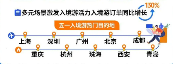 刚刚结束的“五一”假期则是实施240小时过境免签政策后的首个“五一”假期,入境游表现尤为亮眼。携程数据显示,“五一”期间入境游订单量同比增长超过一倍,文化体验与多元玩法成为吸引外国游客的核心动力。