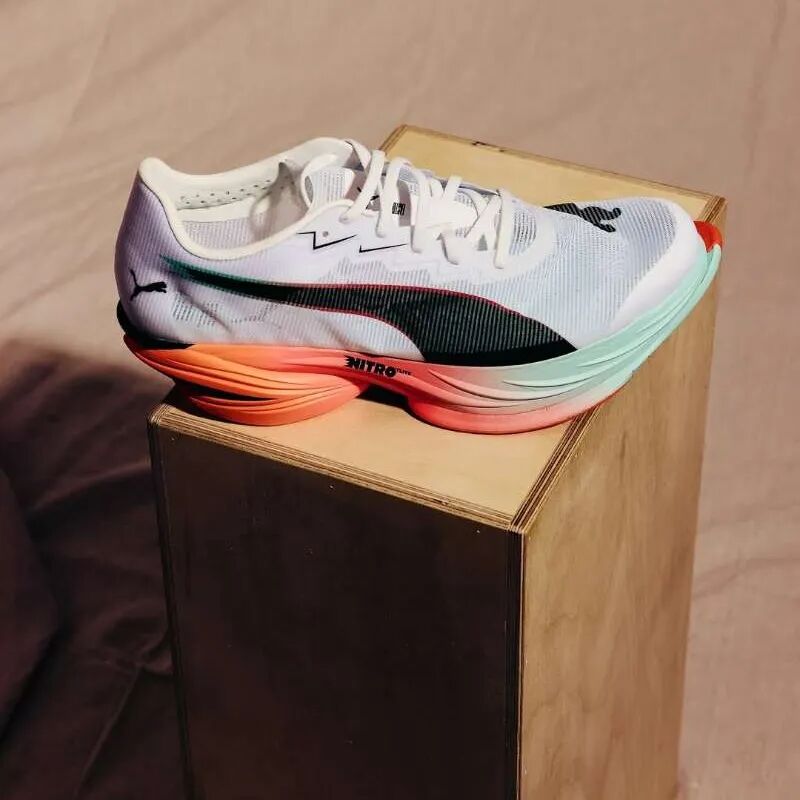 在波马赛道上首次登场的Fast-R 3,是PUMA跑步家族的最新顶级鞋款。在延续前代分离式鞋底设计的基础上,性能再度全方位提升。单只鞋减重达95g,男款42码仅重170g,是PUMA史上最轻的马拉松竞速鞋款。