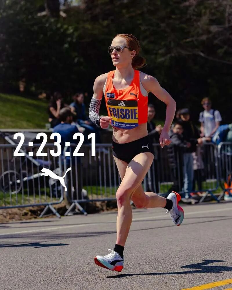 同样在波士顿,美国女子精英选手Annie Frisbie,更是将个人最好成绩提高了近3分钟,以2小时23分21秒强势冲线,在本土女子选手中排名第二,全场第八。