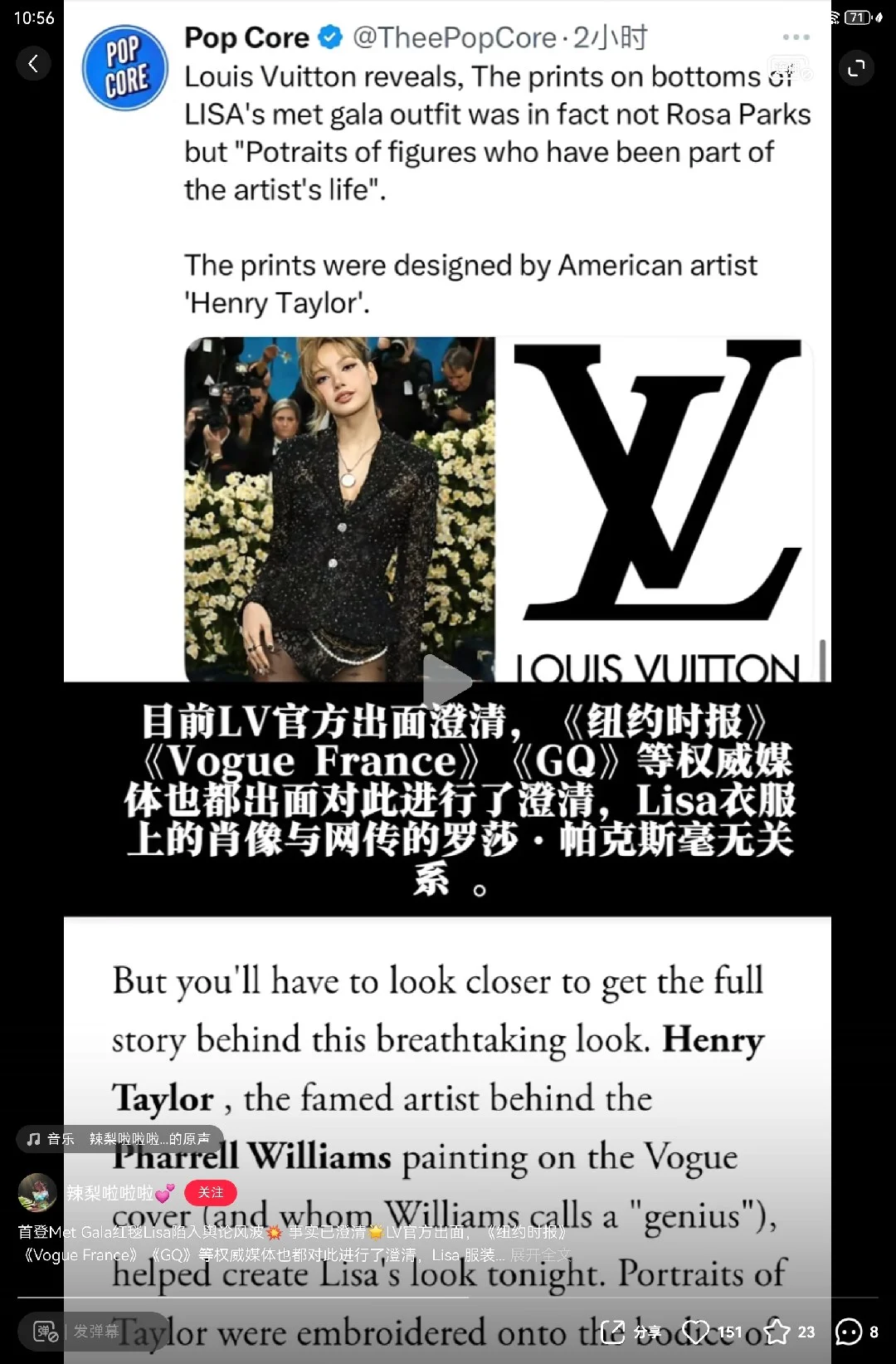 面对汹涌的舆论,LV坐不住了,迅速出面辟谣。品牌方表示,内裤上的刺绣图案并非罗莎・帕克斯,而是艺术家Henry Taylor从生活中汲取灵感创作的人物肖像,他们可能是家人、朋友和邻居。