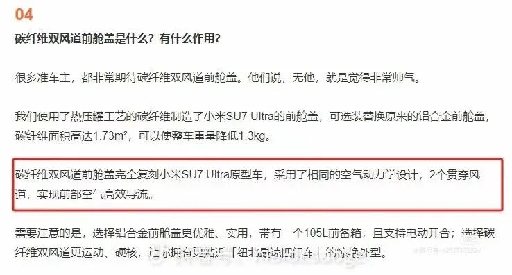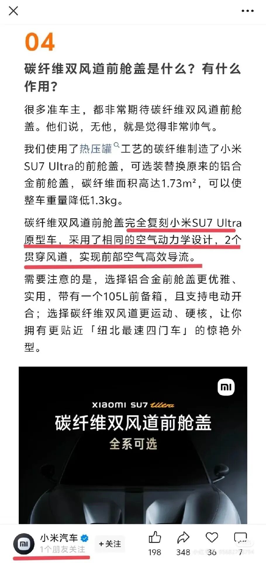 并且,该部件并未通过任何赛道级性能验证,与小米所宣传的 “完全复刻原型车空气动力学设计”等高性能不符。