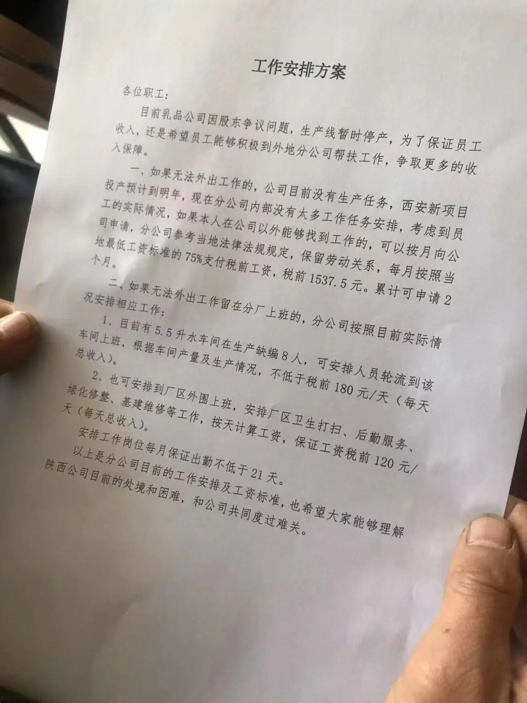 而工厂停工的最直接影响就是,工人收入大幅缩减。有陕西乳品车间员工就表示,自己的薪资收入从每月5000多元骤降到了1000多元。