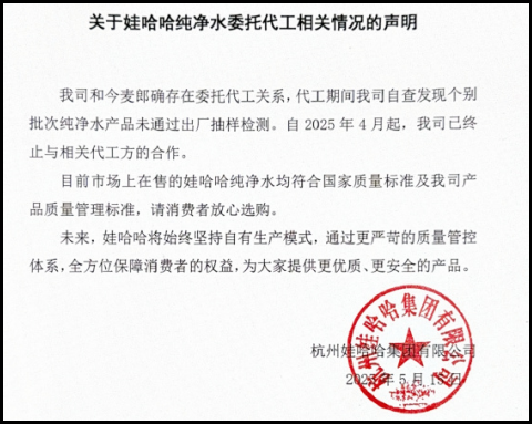 当话题#娃哈哈称已终止和今麦郎代工合作#冲上热搜时,面对巨大的舆论压力,娃哈哈选择以“个别批次不合格”为由紧急切割,试图将焦点引向品质问题。