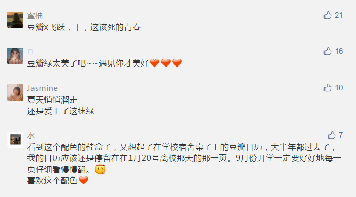 前几日,豆瓣与飞跃联名推出了绿尾小白鞋,把情怀穿在了脚上。