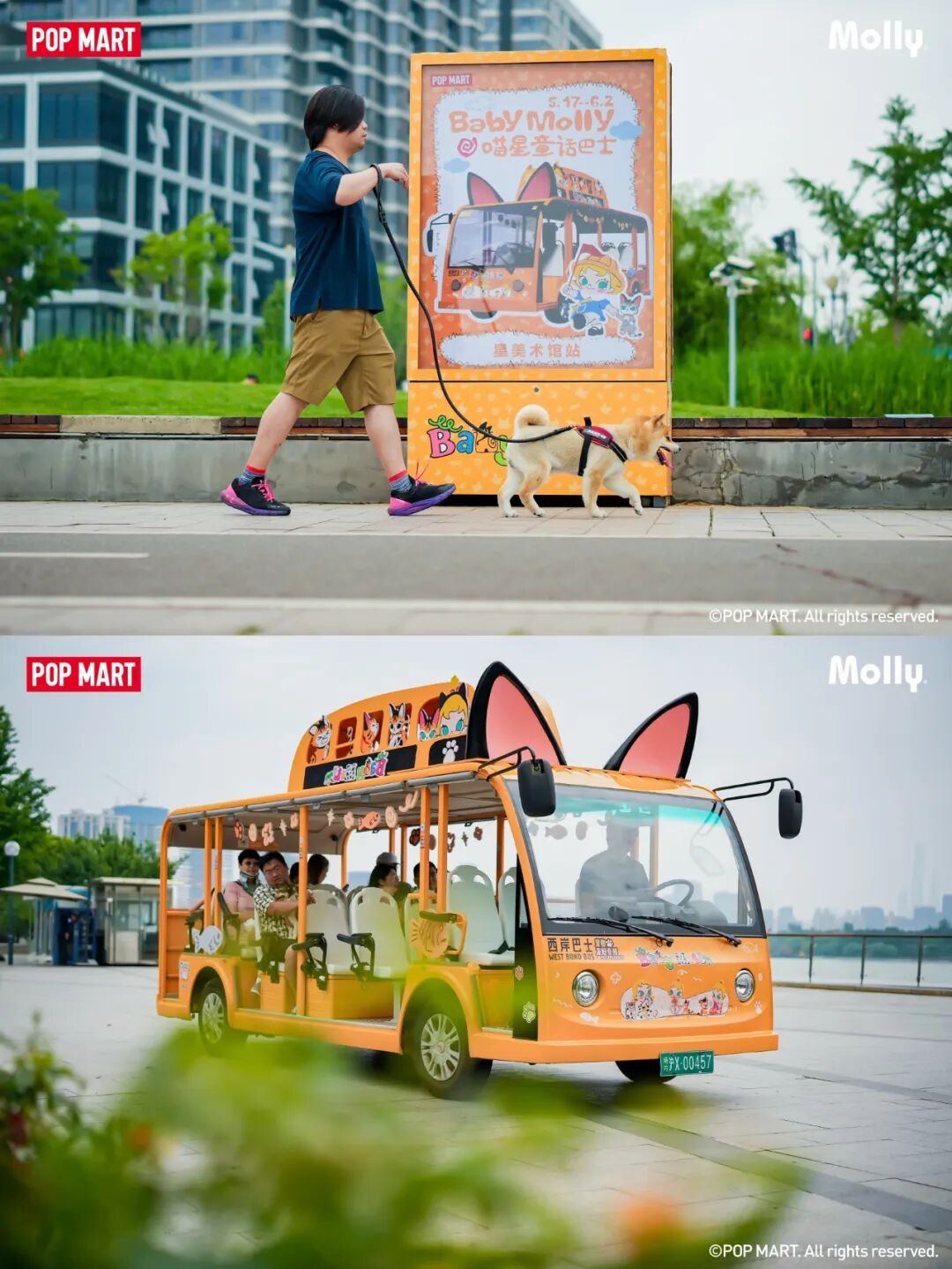 近日,泡泡玛特以 Baby Molly IP 为核心,在 2025 年 5-6 月间串联上海西岸文化艺术空间,联合大耳喵形象打造了「喵星童话巴士」宠物友好专列。