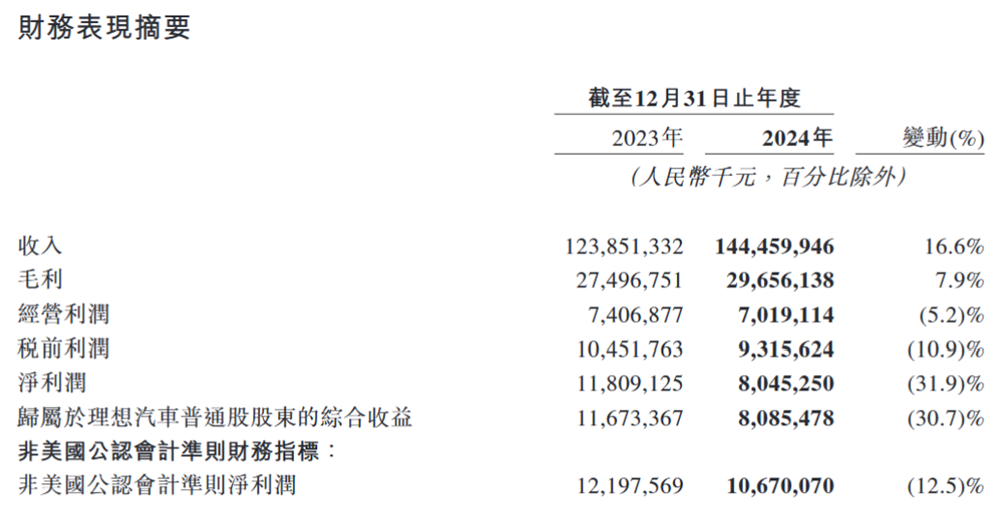 回顾2024年全年,理想汽车的财务表现同样充满矛盾。