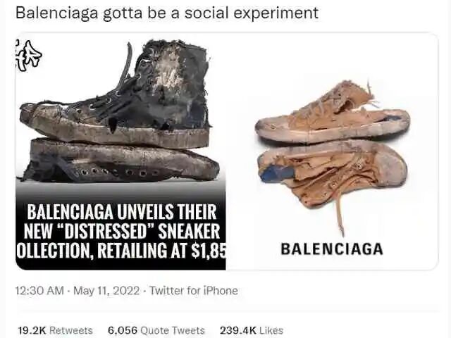 因此巴黎世家陷入了一种 “越丑越贵,越吵越卖” 的怪圈,总有一部分人群甘愿为争议设计买单。