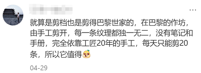 说这每一条都是匠心精心制作,每一条都独一无二,所以它值得这个价钱。