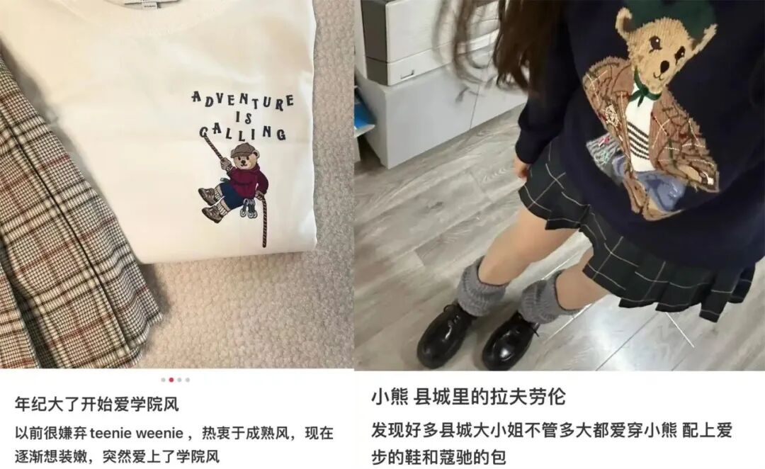 像韩国依恋旗下的Teenie Weenie,主打常青藤校园风,小熊的标志和拉夫劳伦的熊标傻傻分不清,价格却更美丽,吸引了不少消费者“爬墙”。