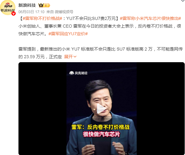 这段时间,如比亚迪、BBA等车型都不可避免的卷入了价格战,但雷军表示小米汽车反内卷,不打价格战,信心底气十足。