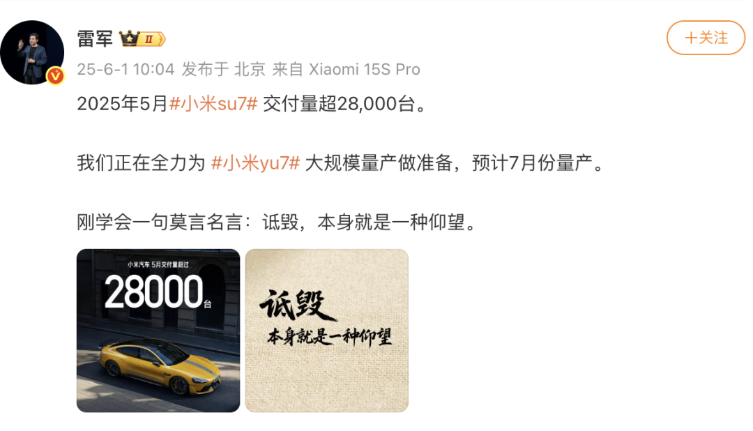 图源:微博@雷军