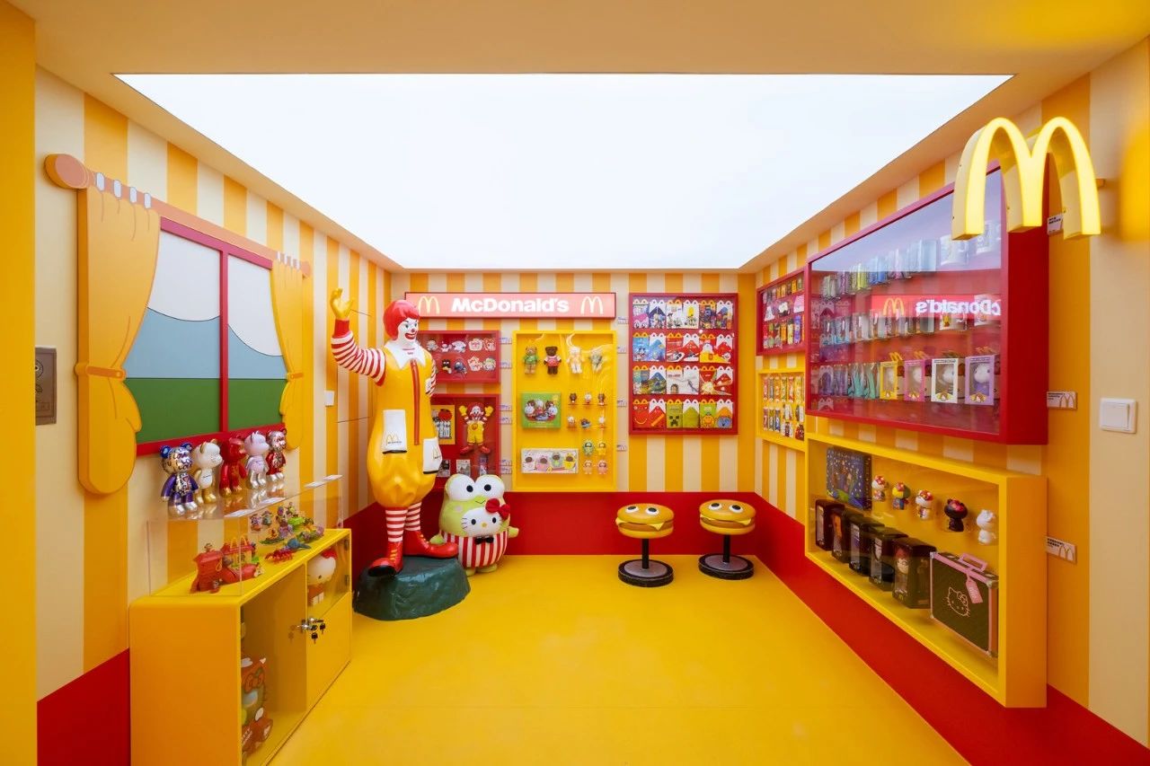 博物馆还精心复刻了生日屋,各种限定的IP玩具铺满整面墙,简直是麦门信徒的天堂。现场还有不少互动装置,特别是自带滤镜的自拍机,轻松拍出复古四宫格大头贴。