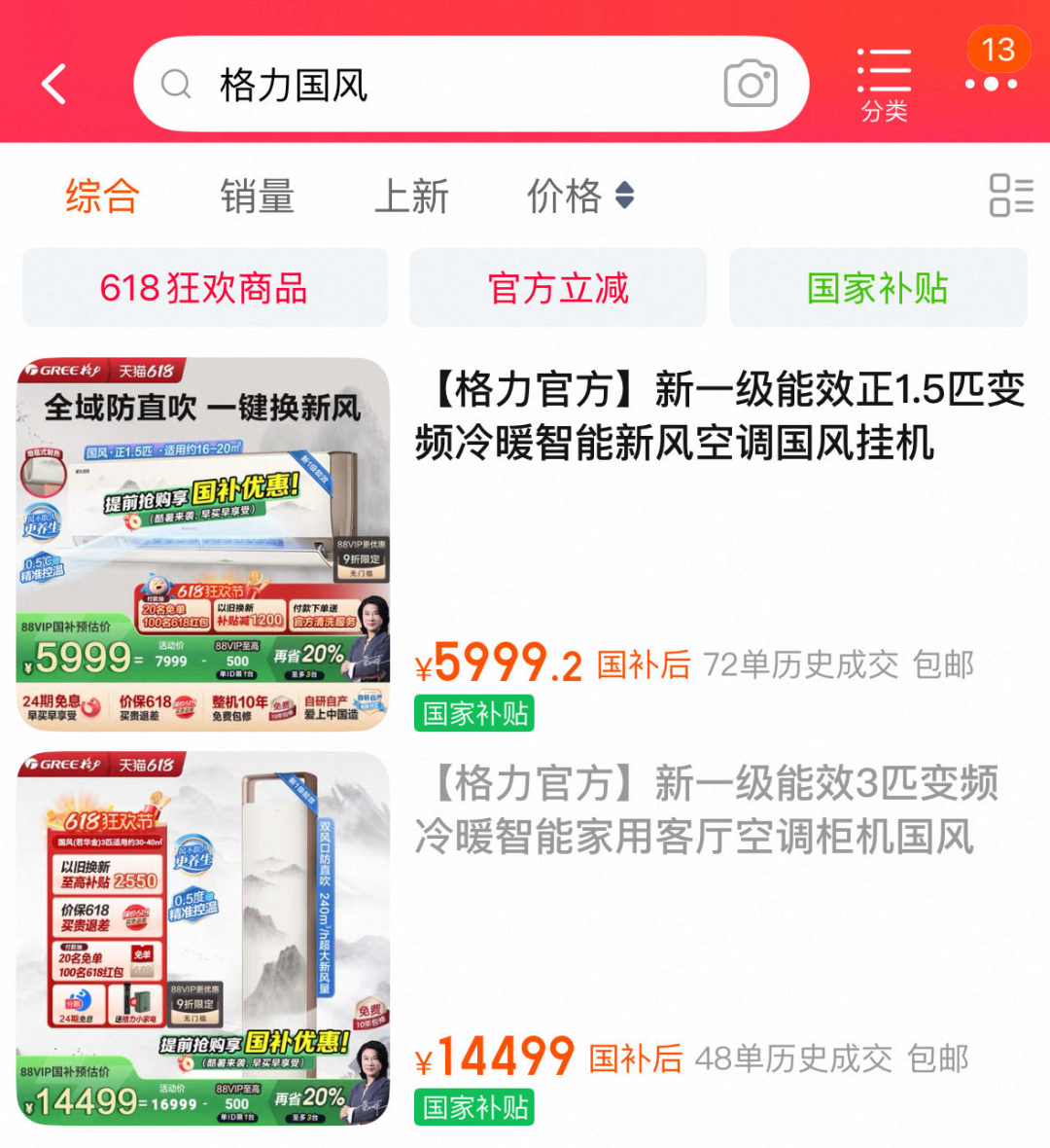 据《营销报》了解,目前格力推出的国风山水系列空调共有两种款式,一款是挂机,国补后售价5999.2元;一款是柜机,国补后价格高达14999元。