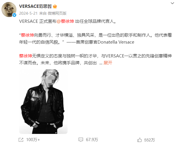 而范思哲在2024年高调官宣蔡徐坤为全球品牌代言人,更是看中了他身上的流量价值。