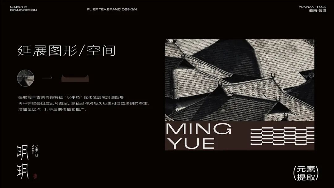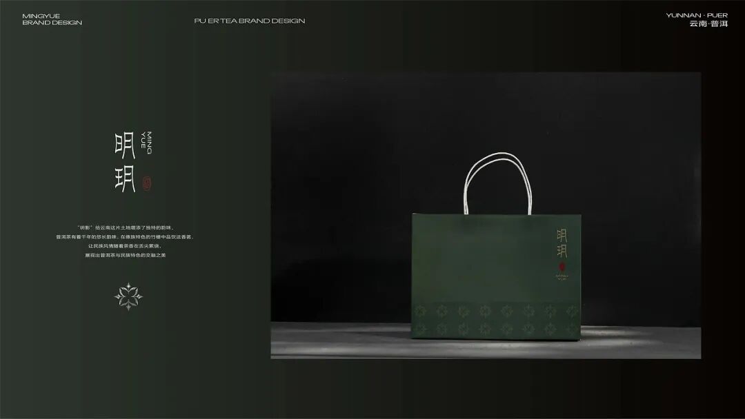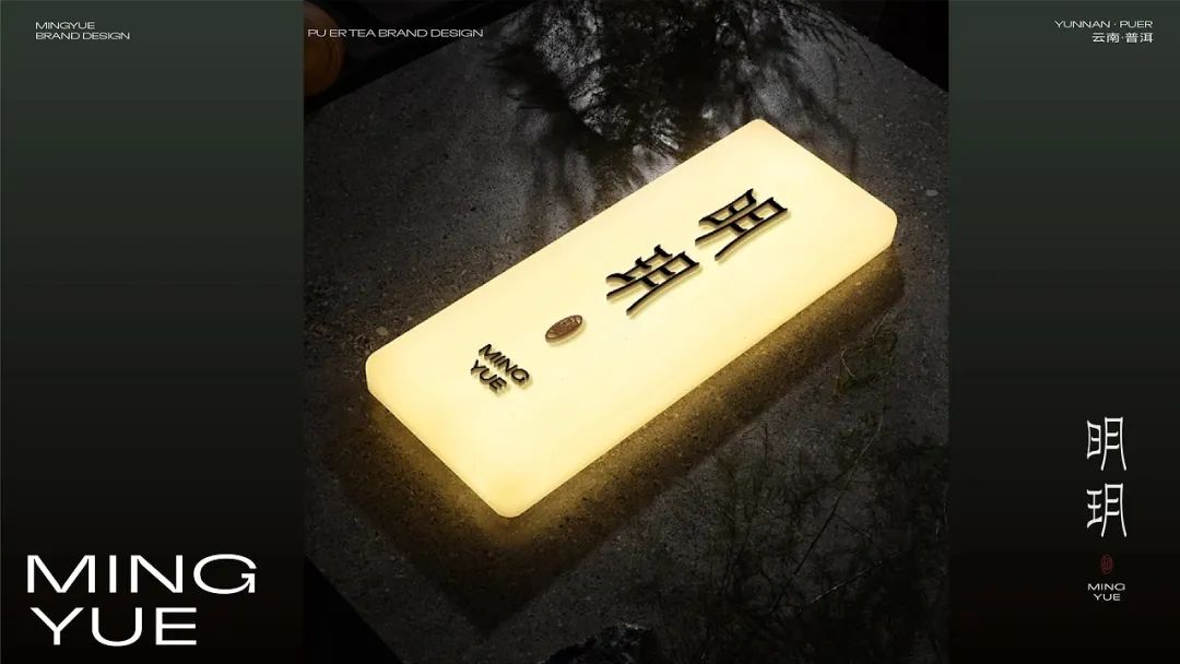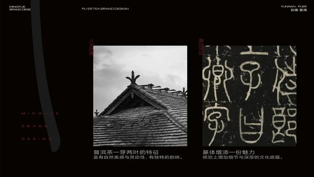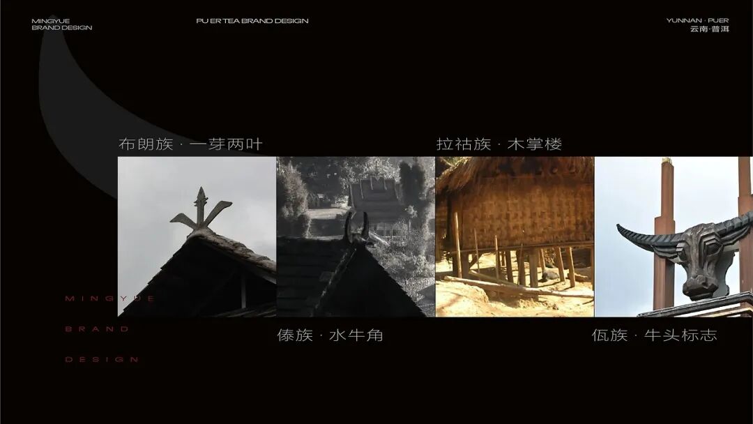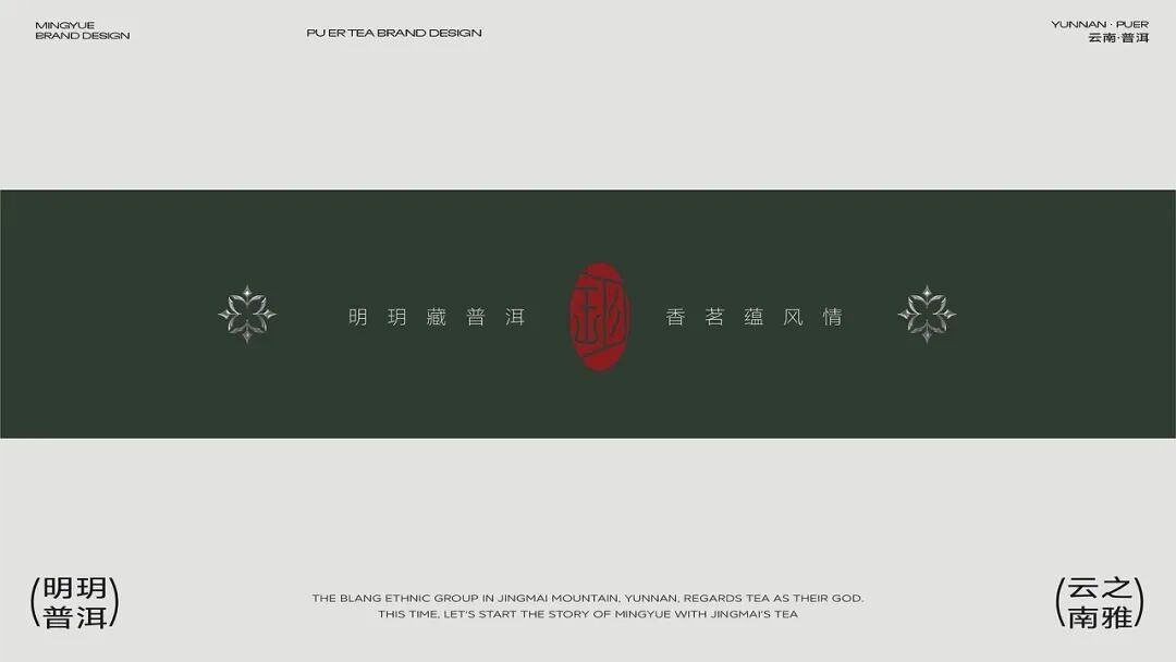 设计取当地建筑屋脊上“一芽两叶”和“水牛角”图腾元素巧妙融入字形,方寸间仿佛置身云南边陲的古树林中,将民族特有的灵动与力量凝于笔端。整体色彩运用上,灰若高山积雪,纯净高雅;棕似茶汤岁月,