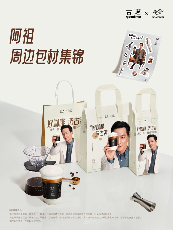 阿祖主题周边及包材在全国古茗现磨咖啡门店陆续上线,联名杯套、贴纸、双杯纸袋,均已就位。