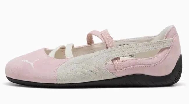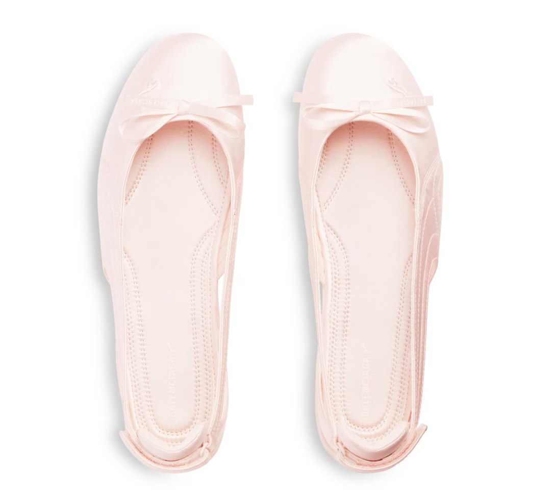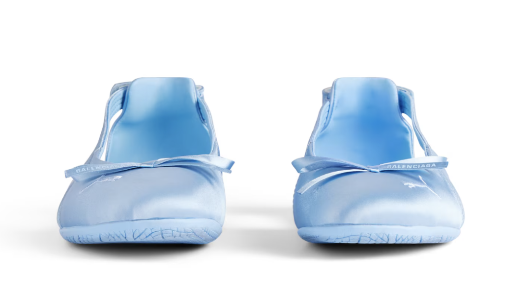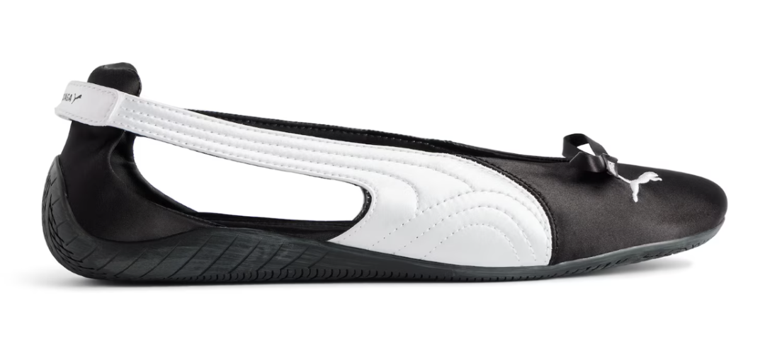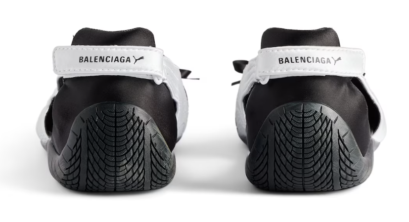 更绝的是,这次联名还推出了Speedcat芭蕾鞋——缎面鞋身+赛车鞋底,鞋头绑着巴黎世家蝴蝶结,甜美与野性并存,被网友戏称为“公主开赛车,一脚油门踩进时尚地狱”。