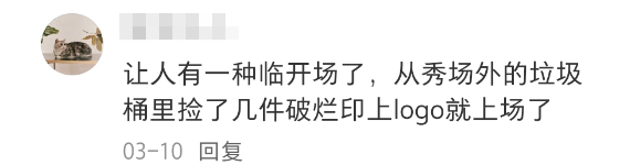 很难不让人怀疑是从秀场外的垃圾堆里捡来的。