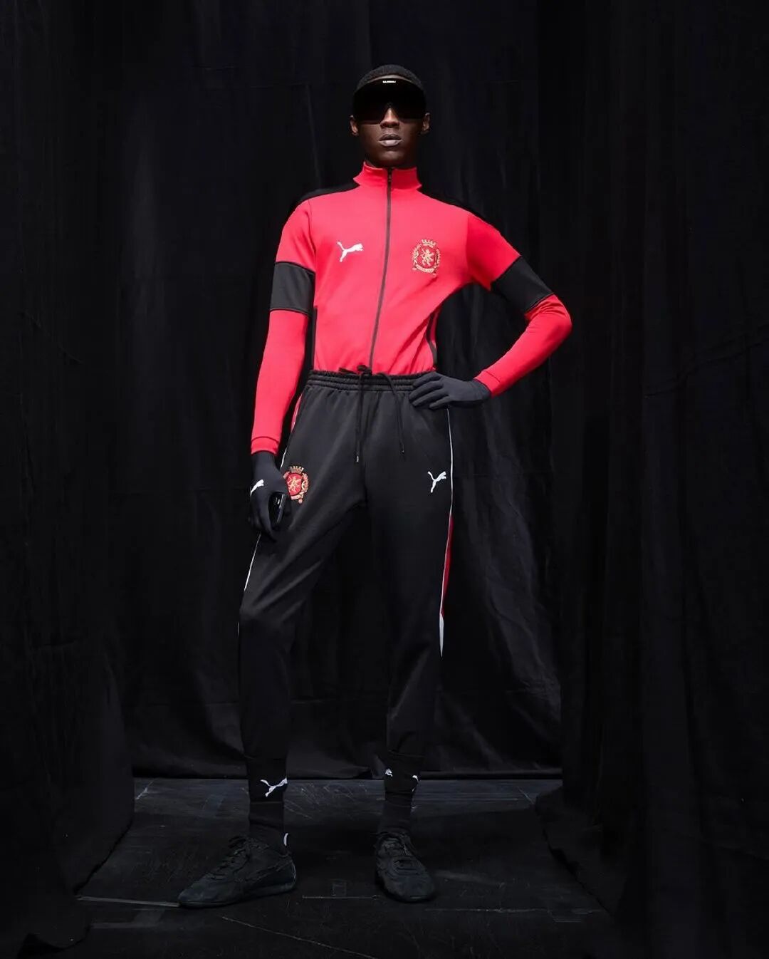 除联名鞋款外,双方还基于 PUMA 经典训练服打造了一系列合作服饰,PUMA 运动套装、皮革飞行员夹克、足球训练衣、训练裤,甚至还带回了超经典的串标运动夹克。
