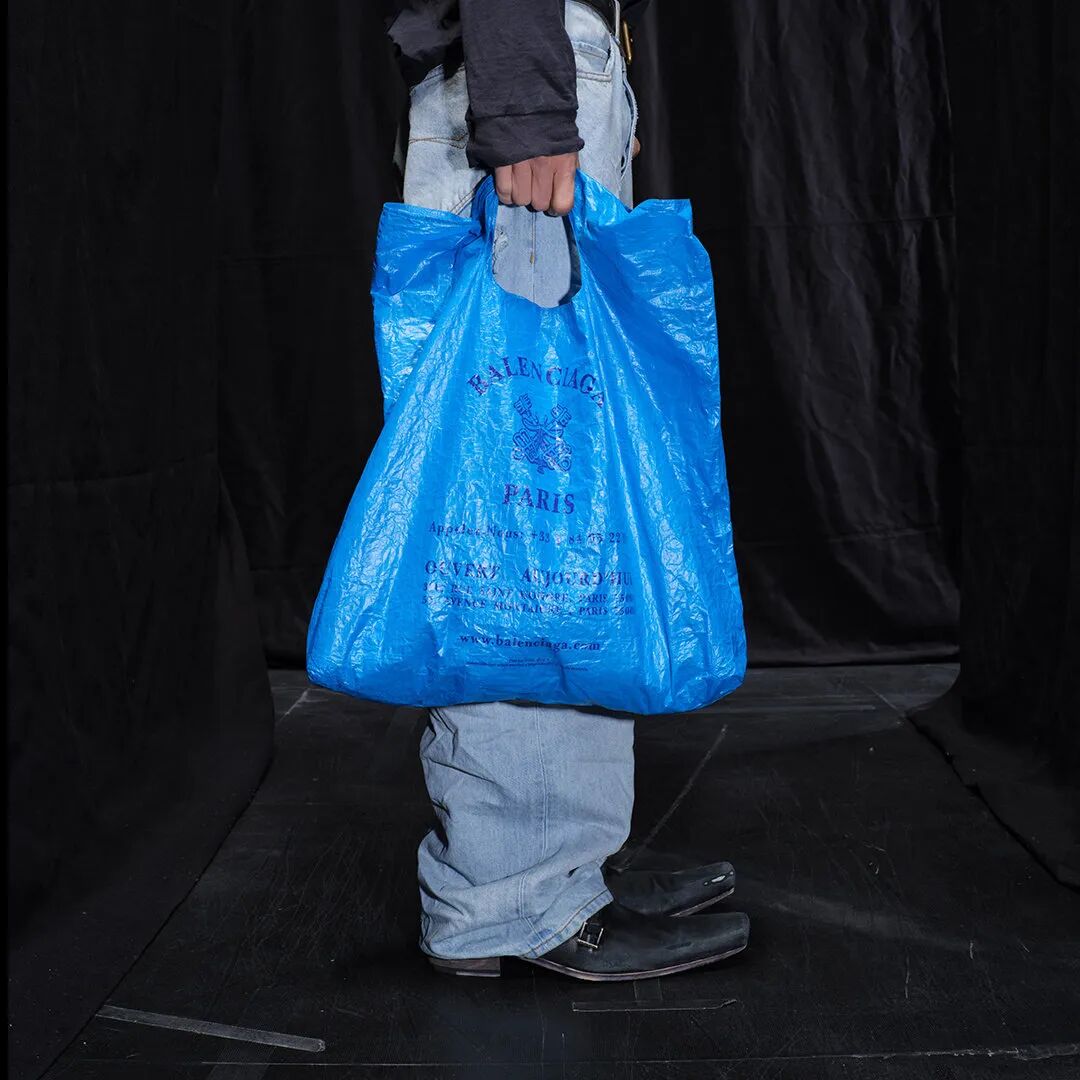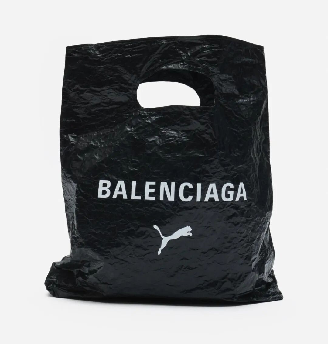 此次巴黎世家联名还推出一款褶皱感Dyneema面料手袋,远看像极了超市免费送的购物袋,近看标价五位数。