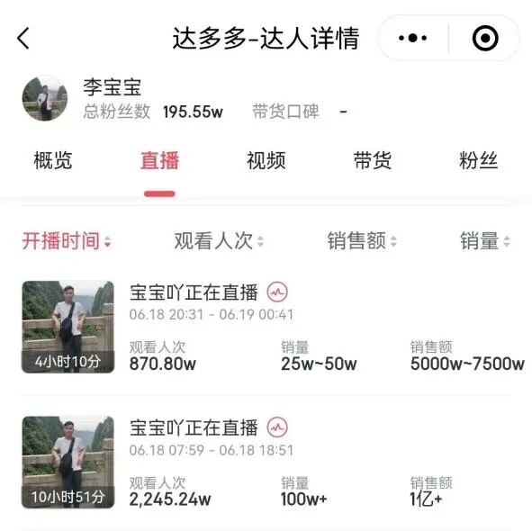 他不是传统意义上的流量王者,也不是常年霸榜的超级大主播,账号粉丝不到200万,李宝宝凭一天内的两场直播,就坐稳了抖音618热播榜和带货榜总榜第一。