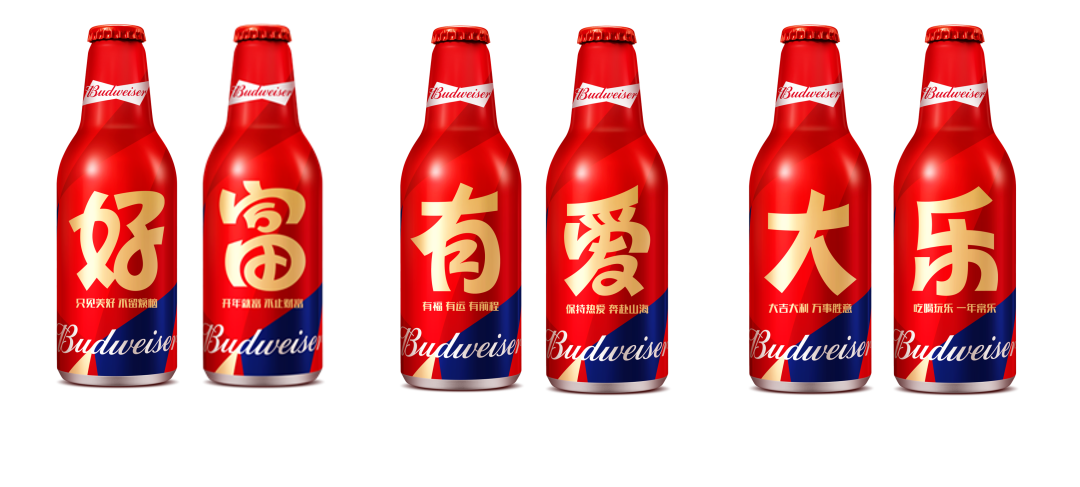 消费者撕开外层瓶衣,露出“好”、“富”、“有”、“大”、“爱”、“乐”等新年祝福,还能自由组合成“大富”、“有爱”等词语。