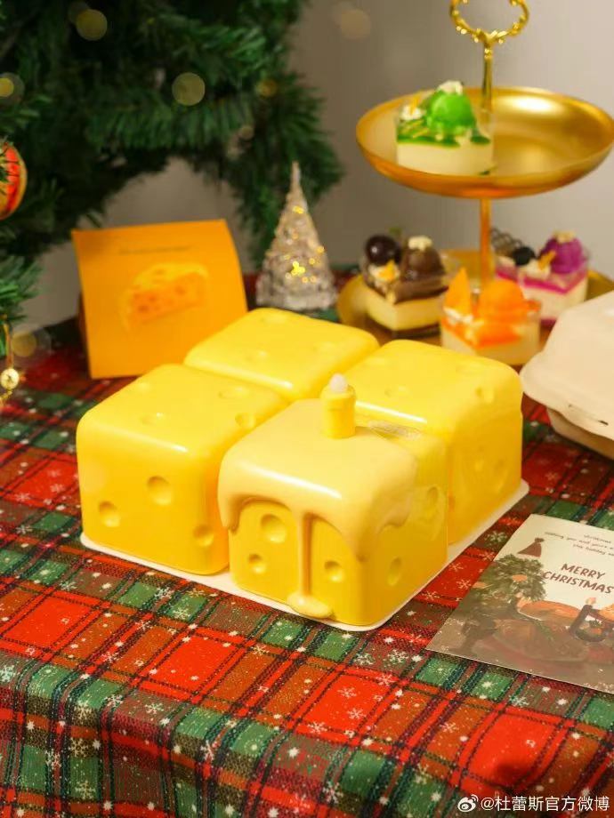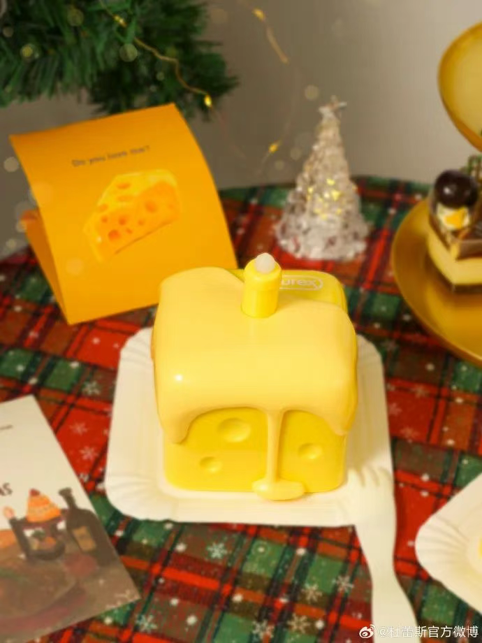 去年圣诞节,杜蕾斯推出“杜杜奶油蛋糕”系列,金灿灿的蜂窝奶酪造型堪称食欲诈骗,谁能想到这玩意儿竟是套套包装盒?