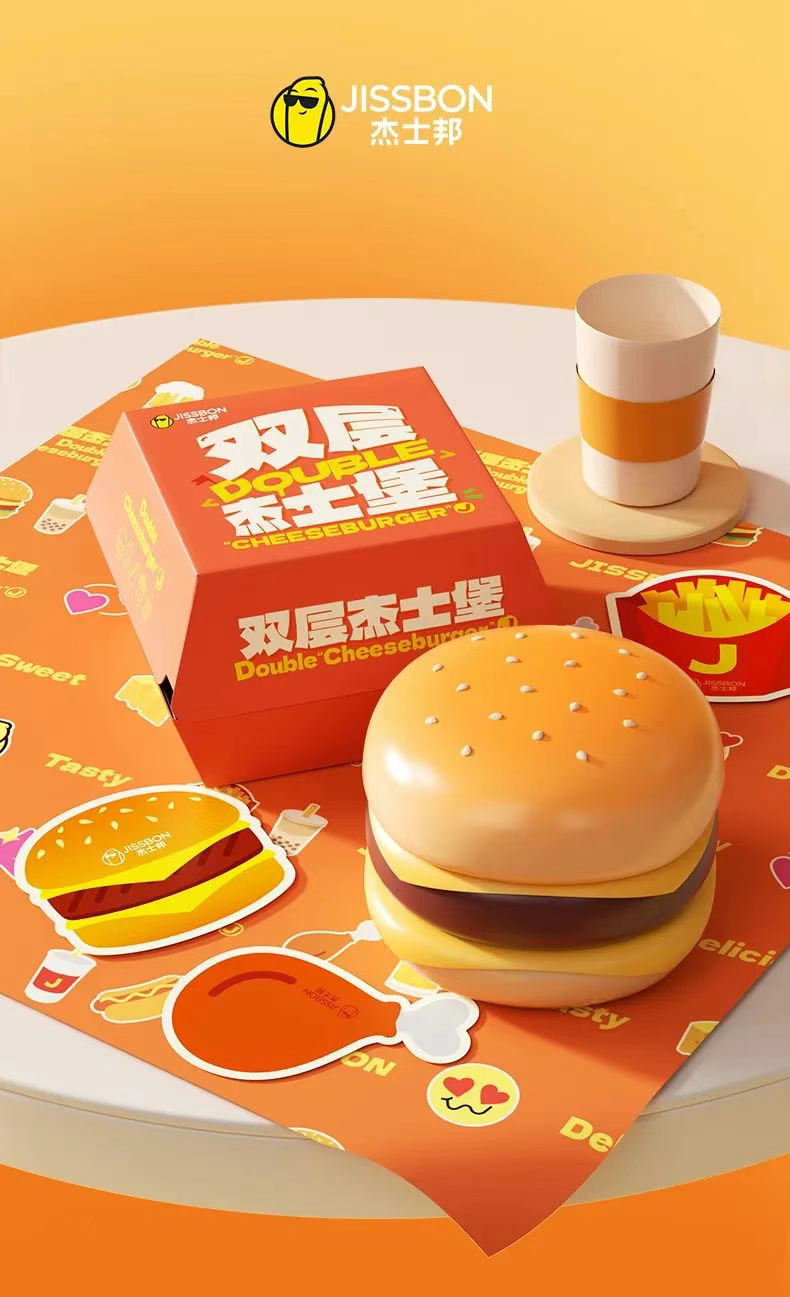 杰士邦还给它取名“双层杰士堡”,谐音经典的“双层芝士堡”。