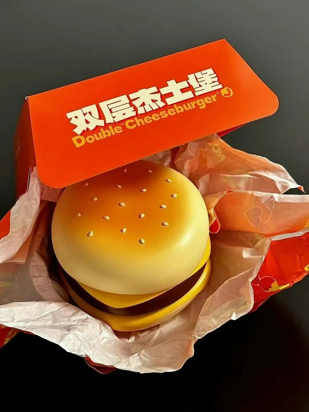 设计上更是把以假乱真玩到极致,汉堡纸+ 汉堡盒的经典包装组合,配上圆润俏皮的双层杰士堡字体,单看外包装绝对能骗到快餐店常客。