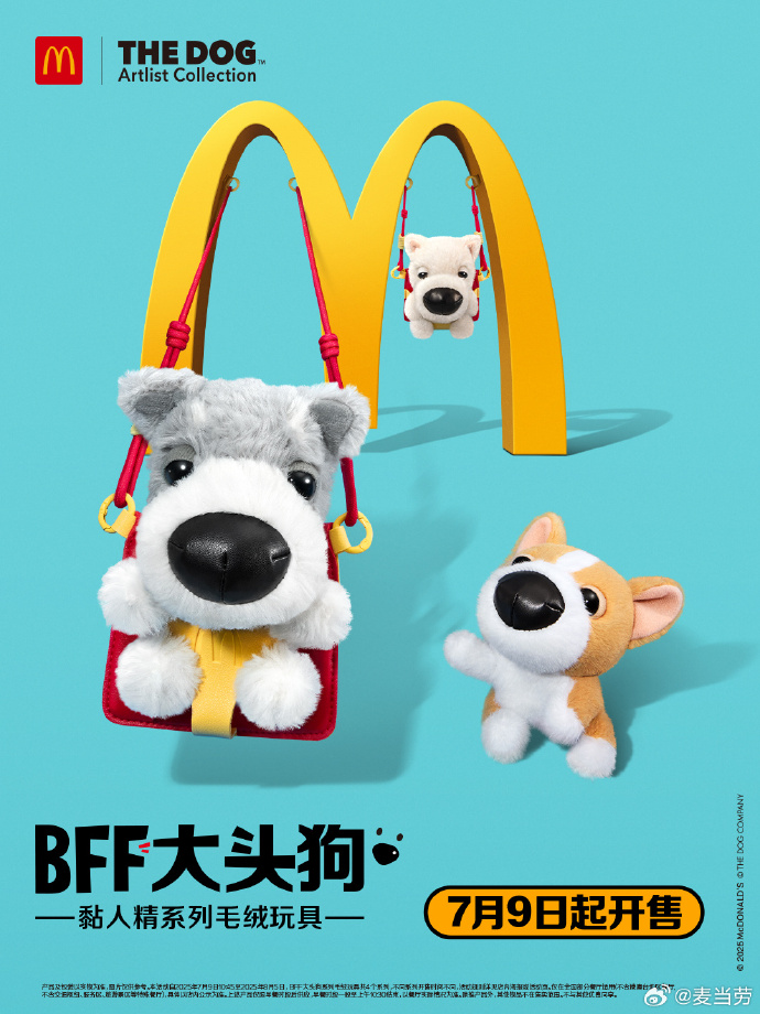 麦当劳的经典IP毛绒玩具,BFF(永远好朋友)大头狗系列要再次回归了,全系列16款超萌大头狗,7月9日起,每周上新4款,还搭配萌趣配件!快来带你的修勾回家吧。