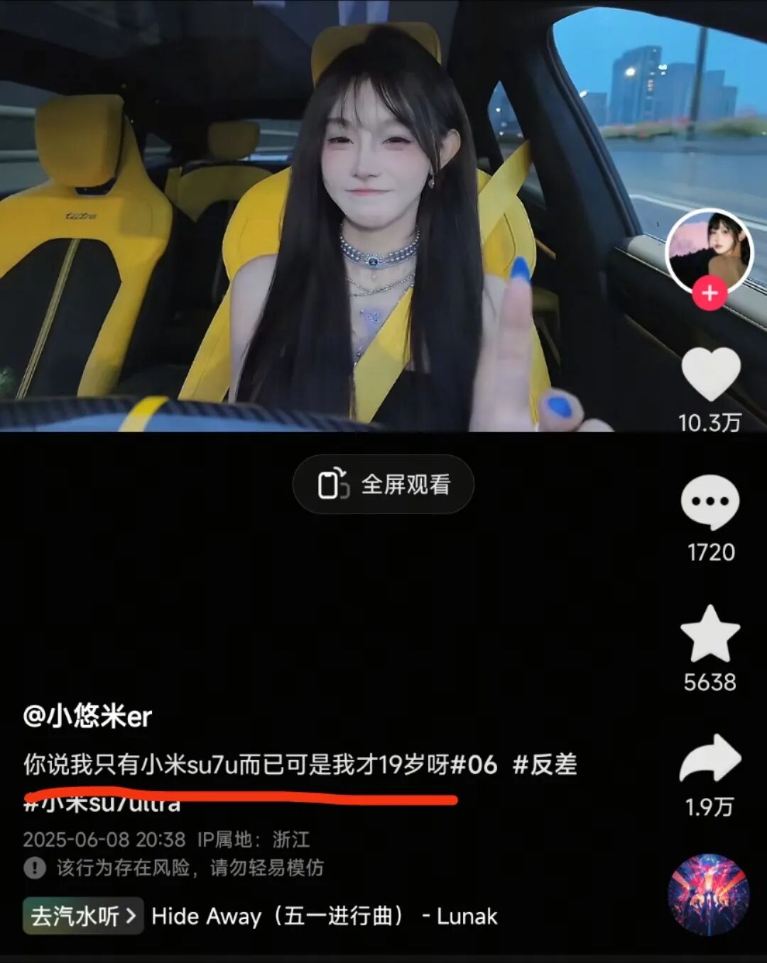 车主信息的不确定,再加上此前她频繁炫耀SU7 Ultra,很难不让人联想到她发视频的目的是不是蹭小米汽车的热度。