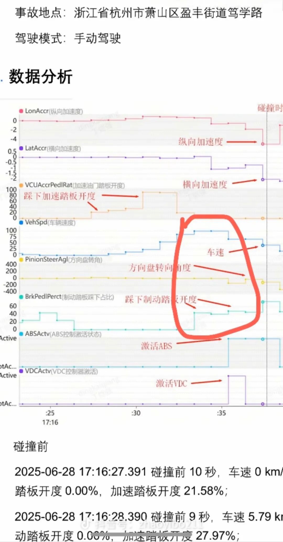 而行车数据显示,事故发生时,油门曾高达90%,而刹车踏板的反馈只有40%左右,这有可能是因误踩或踩偏刹车导致。