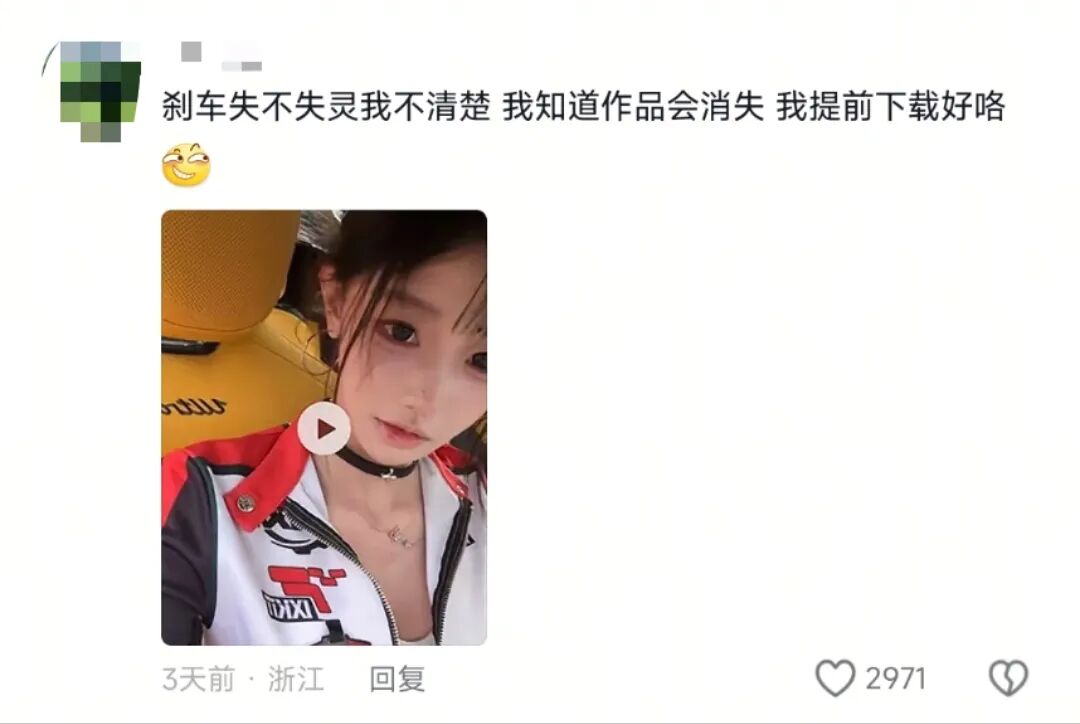 她在视频标题中强调“这刹车又失灵......”;